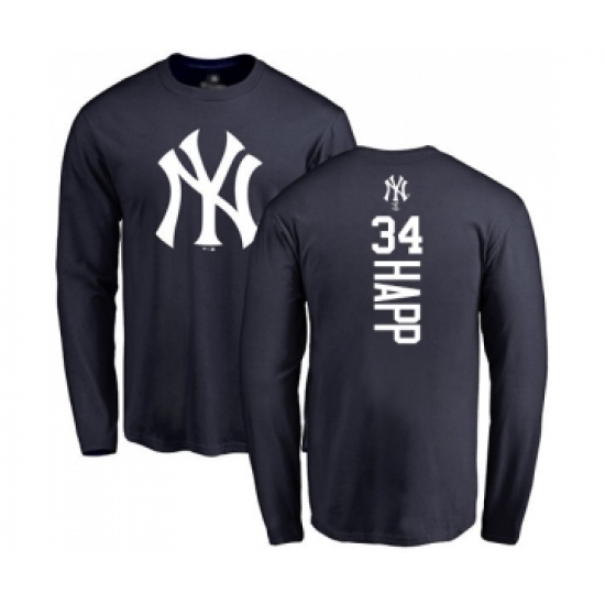 Baseball New York Yankees #34 J.A. Happ Navy Blue Backer Long Sleeve T-Shirt