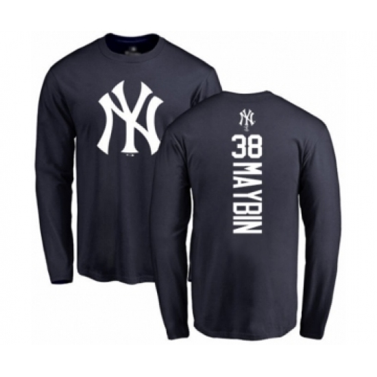 >Baseball New York Yankees #38 Cameron Maybin Navy Blue Backer Long Sleeve T-Shirt