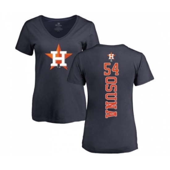 >Baseball Women's Houston Astros #54 Roberto Osuna Navy Blue Backer T-Shirt