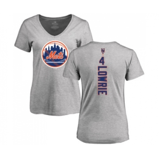 >Baseball Women's New York Mets #4 Jed Lowrie Ash Backer T-Shirt