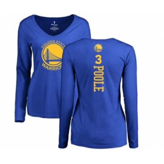 >Basketball Women's Golden State Warriors #3 Jordan Poole Royal Blue Backer Long Sleeve T-Shirt
