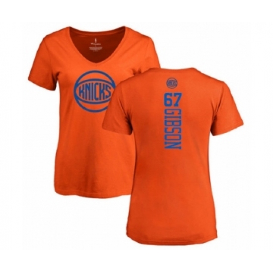 >Basketball Women's New York Knicks #67 Taj Gibson Orange One Color Backer Slim-Fit V-Neck T-Shirt