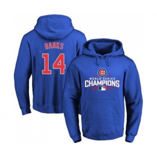 >Cubs #14 Ernie Banks Blue 2016 World Series Champions Pullover MLB Hoodie