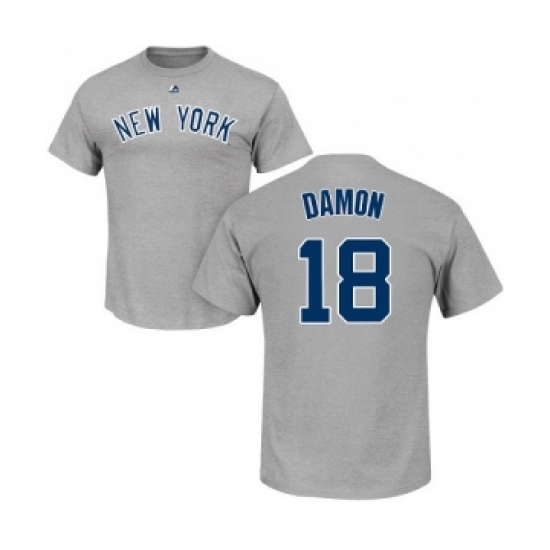 MLB Nike New York Yankees #18 Johnny Damon Gray Name & Number T-Shirt