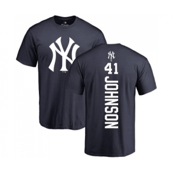 MLB Nike New York Yankees #41 Randy Johnson Navy Blue Backer T-Shirt