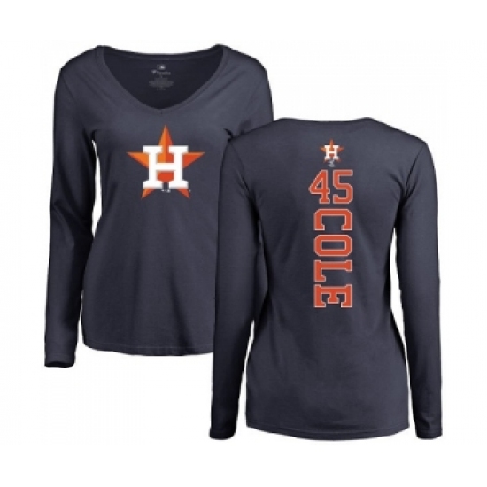 MLB Women's Nike Houston Astros #45 Gerrit Cole Navy Blue Backer Long Sleeve T-Shirt