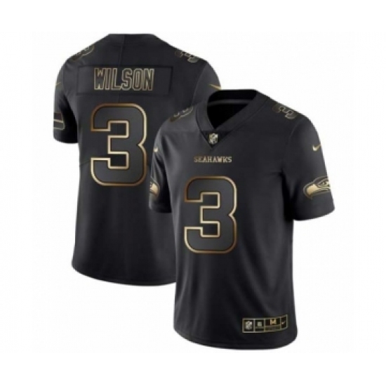 Men Seattle Seahawks #3 Russell Wilson Black Golden Edition 2019 Vapor Untouchable Limited Jersey