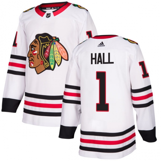 Home>NHL>Chicago Blackhawks>Glenn Hall>Men's Adidas Chicago Blackhawks #1 Glenn Hall Authentic White Away NHL Jersey