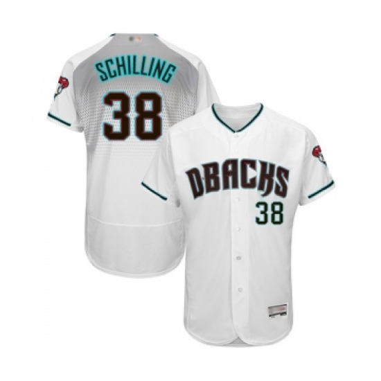 >Men's Arizona Diamondbacks #38 Curt Schilling White Teal Alternate Authentic Collection Flex Base Baseball Jersey