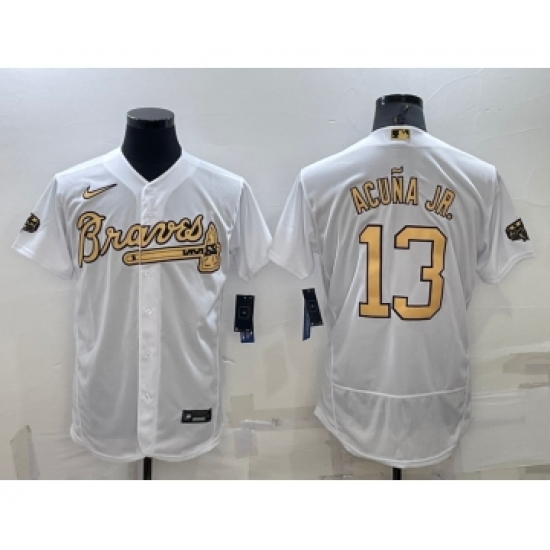 Men's Atlanta Braves #13 Ronald Acuna Jr White 2022 All Star Stitched Flex Base Nike Jersey