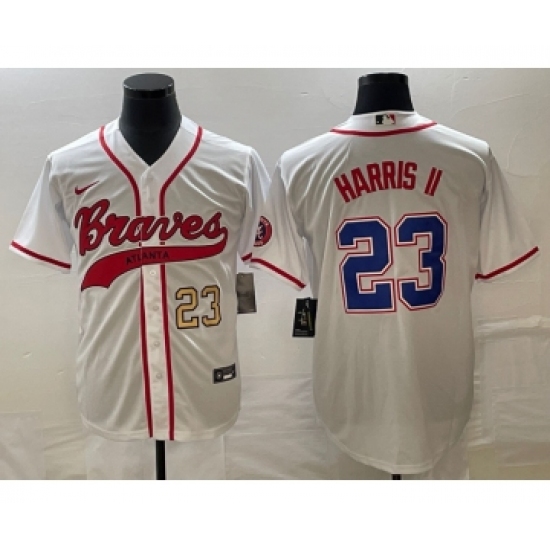 >Men's Atlanta Braves #23 Michael Harris II Number White Cool Base Stitched Baseball Jersey