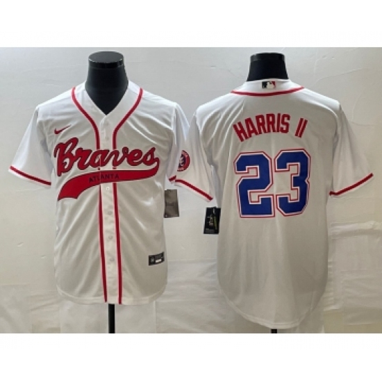 Men's Atlanta Braves #23 Michael Harris II White Cool Base Stitched Baseball Jersey
