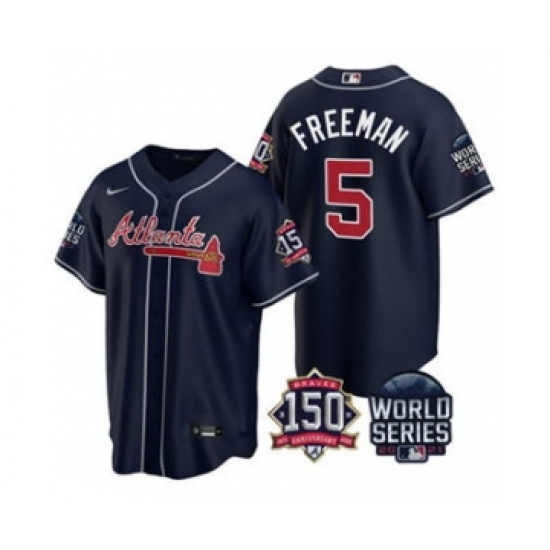 Men's Atlanta Braves #5 Freddie Freeman 2021 Navy World Series With 150th Anniversary Patch Cool Base Baseball Jersey
