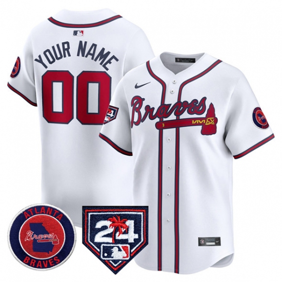 Men's Atlanta Braves Customized White 2024 Spring Training Patch Limited Stitched Baseball Jersey