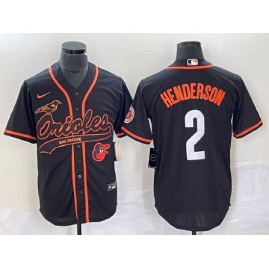 Men's Baltimore Orioles #2 Gunnar Henderson Black With Patch Cool Base Stitched Baseball Jersey