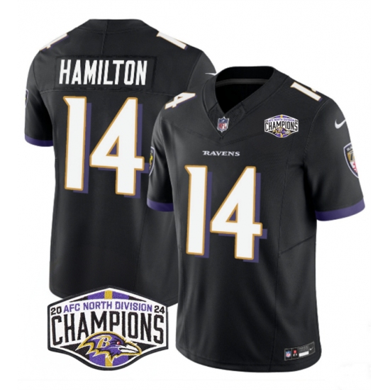 >Men's Baltimore Ravens #14 Kyle Hamilton Black F.U.S.E 2024 AFC North Division Champions Vapor Limited Football Jersey