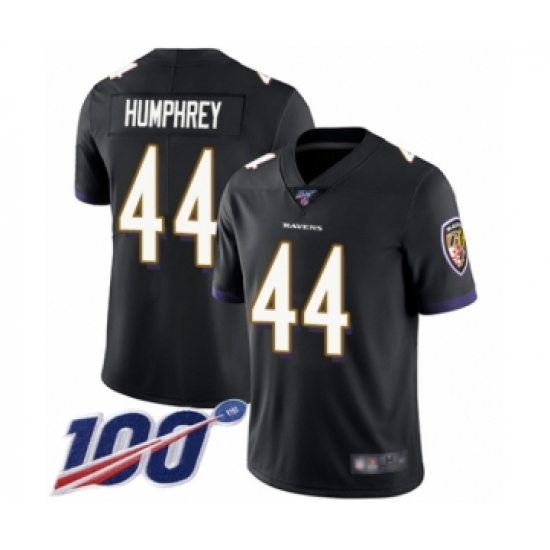 >Men's Baltimore Ravens #44 Marlon Humphrey Black Alternate Vapor Untouchable Limited Player 100th Season Football Jersey