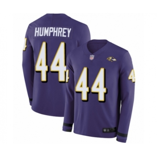 >Men's Baltimore Ravens #44 Marlon Humphrey Limited Purple Therma Long Sleeve Football Jersey