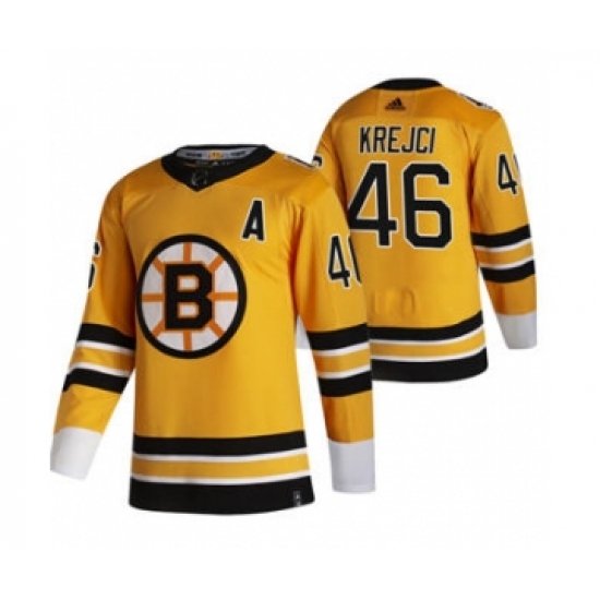 Men's Boston Bruins #46 David Krejci Yellow 2020-21 Reverse Retro Alternate Hockey Jersey