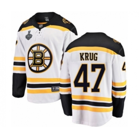 Men's Boston Bruins #47 Torey Krug Authentic White Away Fanatics Branded Breakaway 2019 Stanley Cup Final Bound Hockey Jersey
