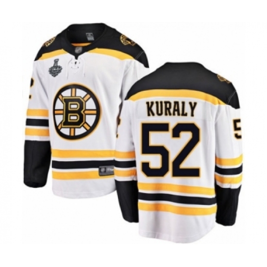 Men's Boston Bruins #52 Sean Kuraly Authentic White Away Fanatics Branded Breakaway 2019 Stanley Cup Final Bound Hockey Jersey