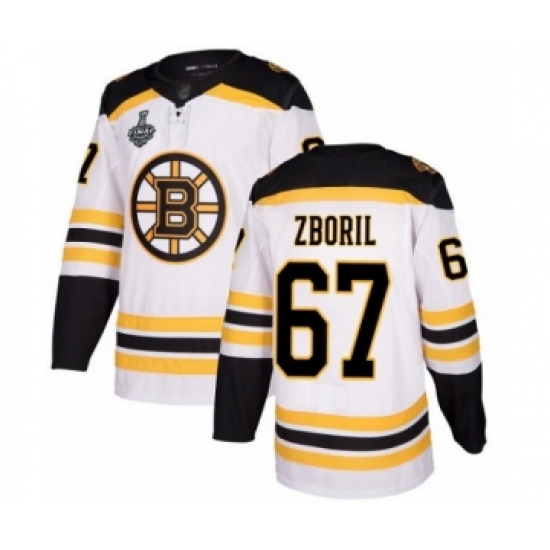 >Men's Boston Bruins #67 Jakub Zboril Authentic White Away 2019 Stanley Cup Final Bound Hockey Jersey