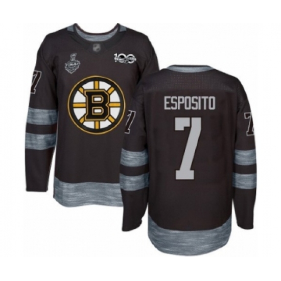 Men's Boston Bruins #7 Phil Esposito Authentic Black 1917-2017 100th Anniversary 2019 Stanley Cup Final Bound Hockey Jersey