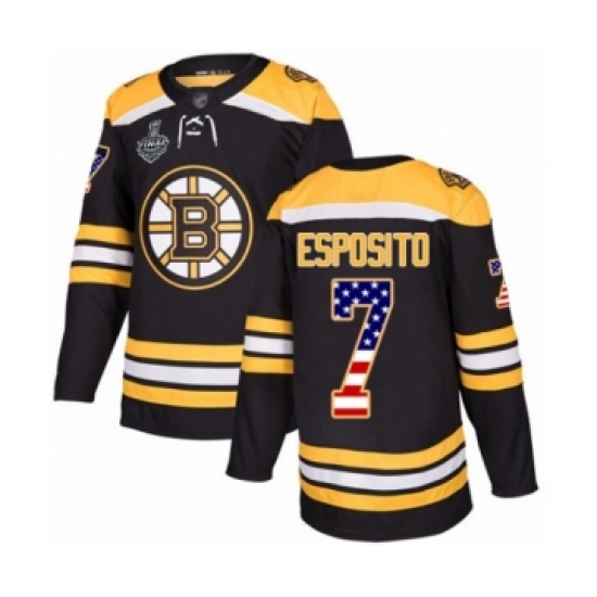 Men's Boston Bruins #7 Phil Esposito Authentic Black USA Flag Fashion 2019 Stanley Cup Final Bound Hockey Jersey