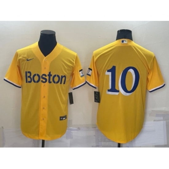 Men's Boston Red Sox #10 Trevor Story Gold 2021 City Connect Stitched Baseball Jersey