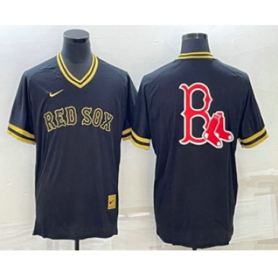 >Men's Boston Red Sox Big Logo Black Gold Nike Cooperstown Legend V Neck Jersey