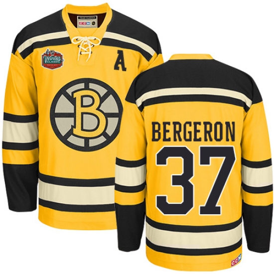 Men's CCM Boston Bruins #37 Patrice Bergeron Premier Gold Winter Classic Throwback NHL Jersey