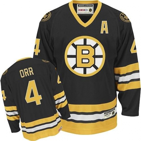 Men's CCM Boston Bruins #4 Bobby Orr Premier Black Throwback NHL Jersey