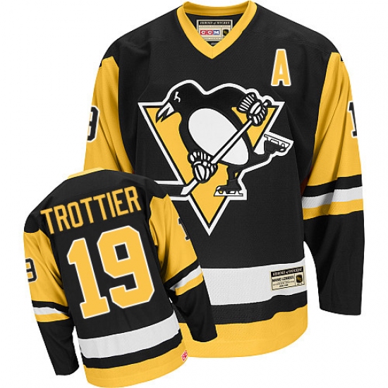 Men's CCM Pittsburgh Penguins #19 Bryan Trottier Authentic Black Throwback NHL Jersey