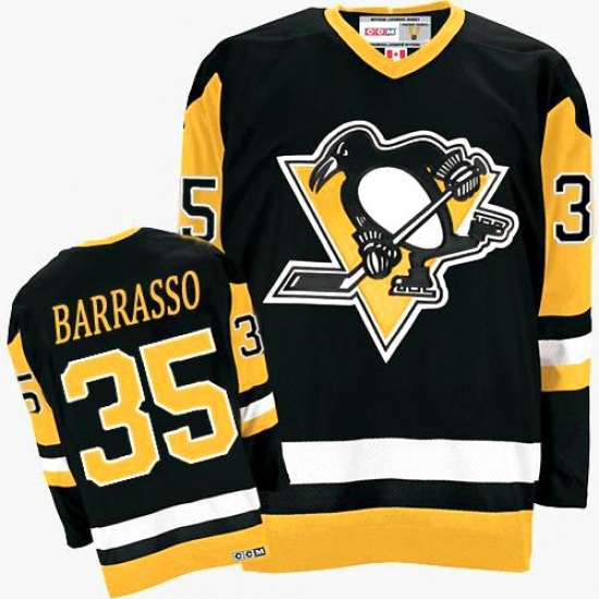 Men's CCM Pittsburgh Penguins #35 Tom Barrasso Authentic Black Throwback NHL Jersey