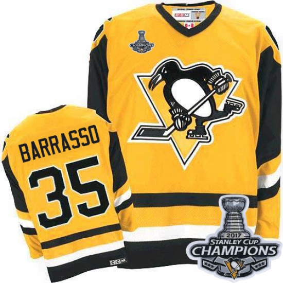 Home>NHL>Pittsburgh Penguins>Tom Barrasso>Men's CCM Pittsburgh Penguins #35 Tom Barrasso Authentic Yellow Throwback 2017 Stanley Cup Champions NHL Jersey