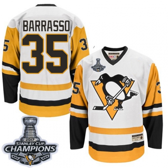 Home>NHL>Pittsburgh Penguins>Tom Barrasso>Men's CCM Pittsburgh Penguins #35 Tom Barrasso Premier White Throwback 2017 Stanley Cup Champions NHL Jersey