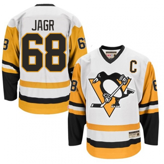 Men's CCM Pittsburgh Penguins #68 Jaromir Jagr Authentic White Throwback NHL Jersey