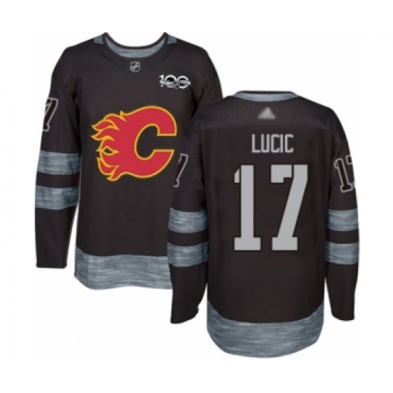 Men's Calgary Flames #17 Milan Lucic Authentic Black 1917-2017 100th Anniversary Hockey Jersey