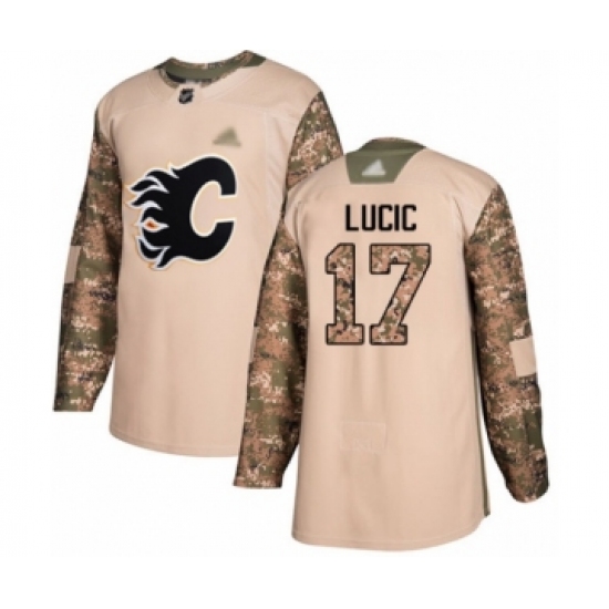 >Men's Calgary Flames #17 Milan Lucic Authentic Camo Veterans Day Practice Hockey Jersey