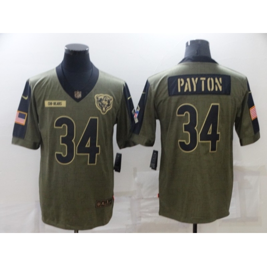 >Men's Chicago Bears #34 Walter Payton Nike Olive 2021 Salute To Service Limited Player Jersey