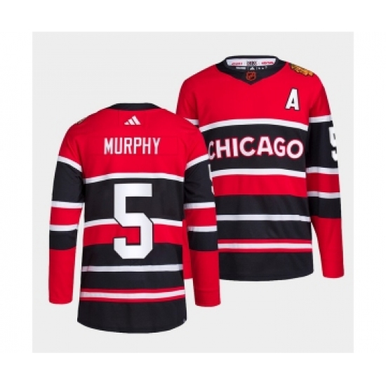 >Men's Chicago Blackhawks #5 Connor Murphy Red Black 2022 Reverse Retro Stitched Jersey