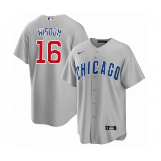 Men's Chicago Cubs #16 Patrick Wisdom Gray Cool Base Stitched Baseball Jersey