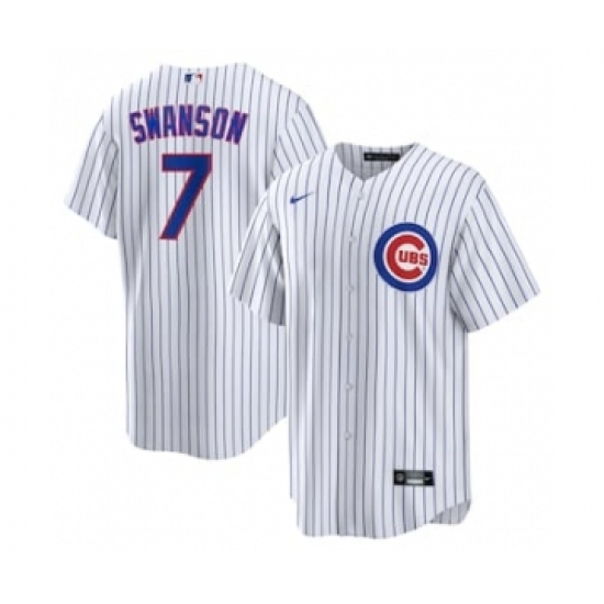 Men's Chicago Cubs #7 Dansby Swanson White Cool Base Stitched Baseball Nike Jersey