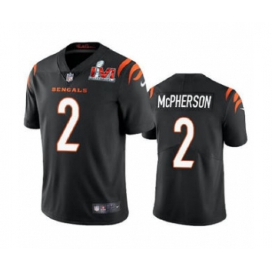 >Men's Cincinnati Bengals #2 Evan McPherson 2022 Black Super Bowl LVI Vapor Limited Stitched Jersey