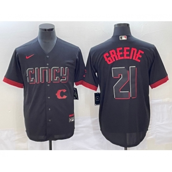 Men's Cincinnati Reds #21 Hunter Greene Black 2023 City Connect Cool Base Stitched Jersey