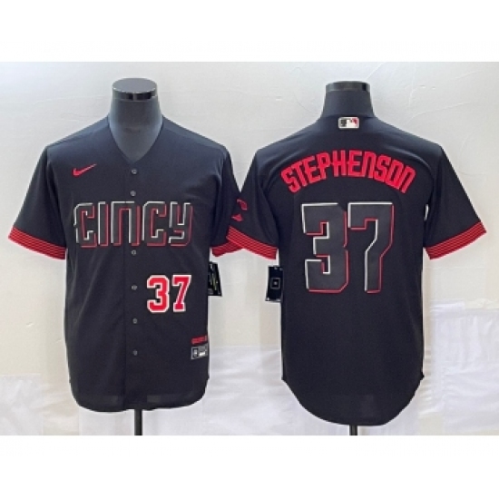 Men's Cincinnati Reds #37 Tyler Stephenson Number Black 2023 City Connect Cool Base Stitched Jersey1