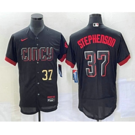 Men's Cincinnati Reds #37 Tyler Stephenson Number Black 2023 City Connect Flex Base Stitched Jersey 1