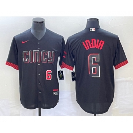 >Men's Cincinnati Reds #6 Jonathan India Number Black 2023 City Connect Stitched Jersey