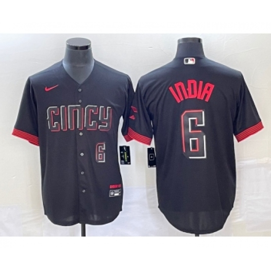 Men's Cincinnati Reds #6 Jonathan India Number Black 2023 City Connect Stitched Jersey1