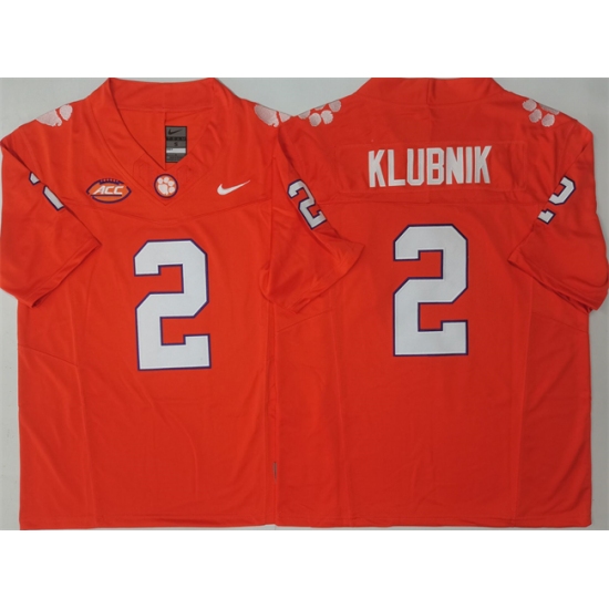 >Men's Clemson Tigers #2 Cade Klubnik Orange F.U.S.E. Stitched Football Jersey
